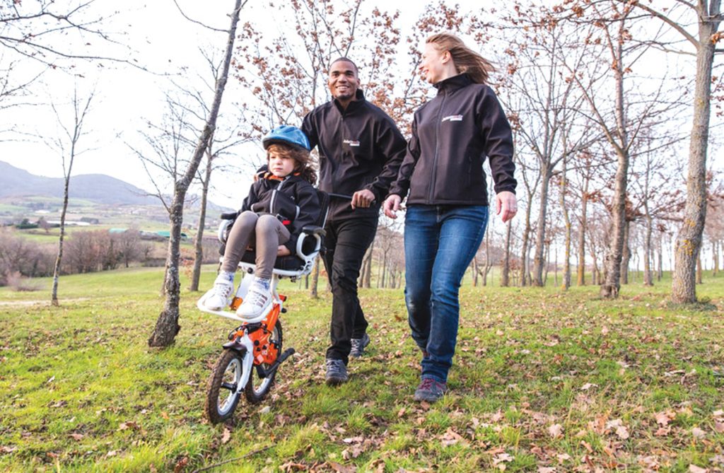 Get out and about with this all-terrain stroller for children under 30 kg. Very comfortable and safe, this hiking and running stroller is very easy to handle, fold and store. With single-track wheel technology, the Joelette kid goes everywhere, even on rough roads. It can be driven by only one person. However, a pair of sturdy front arms is available for an extra companion to use when help is needed to get past obstacles or through more challenging terrain. Designed in collaboration with an orthopaedic centre, the frame and shock absorbers reduce vibrations for a more comfortable experience. There is also an optional interface that can replace the seat for the running stroller application.